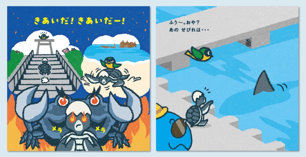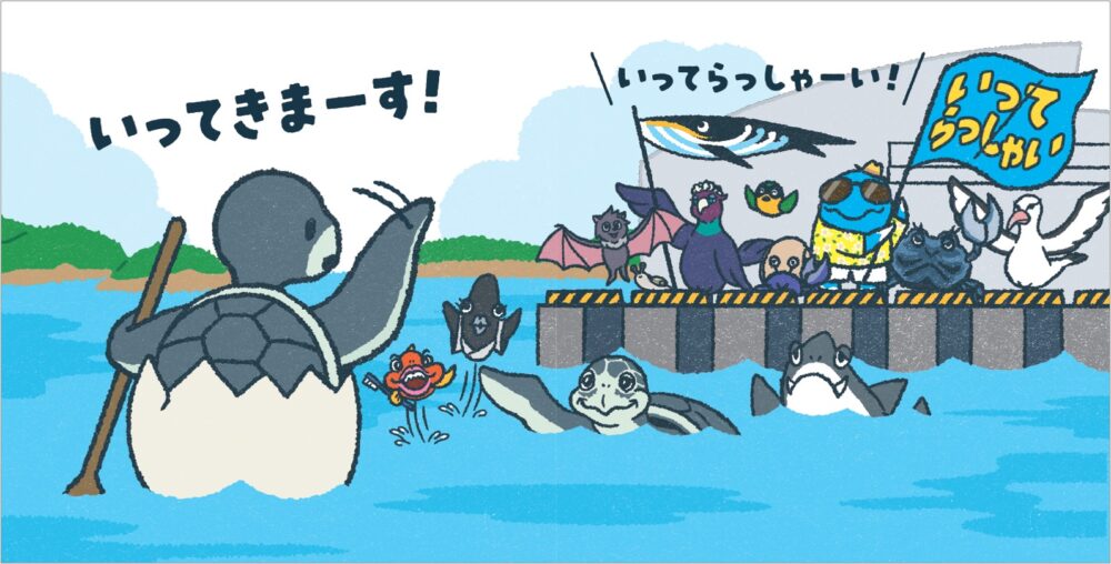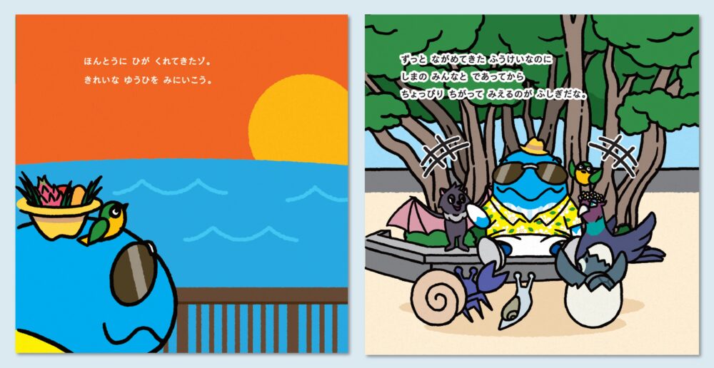 最後に、一番気持ちを込めたこと。第1弾の主人公メグロ「メグロー」は島の固有種、第2弾のアオウミガメ「ボニン」は海を回遊する生きものです。島で生きることを選んだメグローと、島を出て旅することを選んだボニン。各物語のラストは「見送る側」と「見送られる側」という対比で描いています。それでも、ふたり共通の拠りどころとして存在するのは小笠原。関わり方は違っても、それぞれの形で故郷を思い続けていれば、島もきっと思いを返してくれるのではないでしょうか。そう信じています。