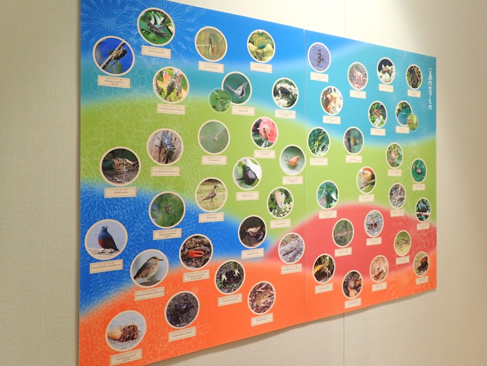 この季節、父島の「みち」で出会えるかもしれない生きものを集めて大きなパネルにしてみました。