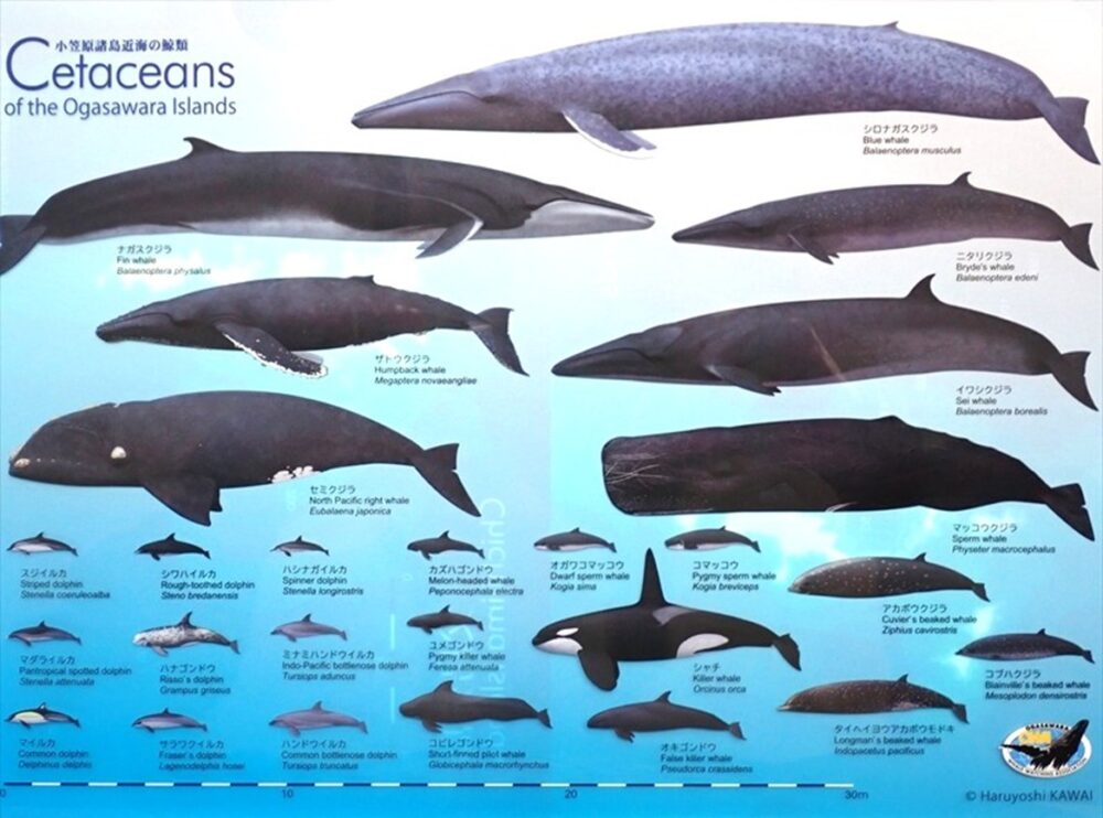 私達がクジラを自分の目で見て感じることができるのは、海に棲む彼らが水面行動で海面に出てくるほんの短い時間だけ。例えば1日ツアーに出ていたとしても実際にクジラを見ている時間はそれほど長くありません。それでも彼らは見る者の心をグッと掴んで離さない、そんな魅力に満ちた生き物です。毎年その姿を小笠原の島々の近くで見せてくれるザトウクジラも、その大きさやフォルム、アクロバティックな行動や繁殖期の母子の仲睦まじい姿など、何度見ても飽くことのない姿を見せてくれます。そんなクジラ達の姿をただただ眺める時間も本当に贅沢な時間ですが、彼らの生態や進化の歴史についてより深く知ることでホエールウォッチングがより楽しくなるはずです。是非、小笠原でのホエールウォッチングの前でも後でも、ビジターセンターを訪れてザトウクジラについてより理解を深めていただければ幸いです。皆様のご来館をお待ちいたしております。