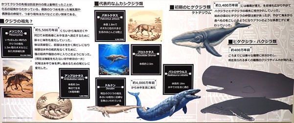 今回の展示で触れているのは、クジラの祖先が辿ってきた壮大な進化の旅物語の中でも、特にその大型鯨類の地球規模での回遊の始まりについてです。