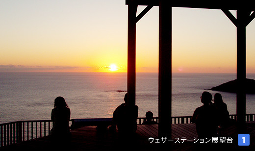 父島の西側の海を望む「ウェザーステーション展望台」を目指すコース。水平線に沈む夕日が絶景のポイントで島民・観光客が自然と集まり、美しい夕暮れ時のひとときを過ごします。街を抜けた後はずっと上り坂になるため最低でも30分はみておきましょう。夕日の時間に間に合うよう余裕を持って出発してください。