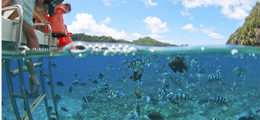 世界的にも注目される小笠原の海をじっくり観察するにはシュノーケリングやダイビングがお勧め。目を覆うほどの魚の群れ、色とりどりの熱帯魚など見所はたくさん。ダイビングをしたことがない方でもインストラクターが丁寧に教えてくれる体験ダイビングもありますよ。
