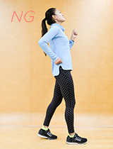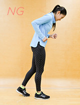 腕ふり: 猫背にならずに、肘をしっかりと後ろにひいてリズムよく振るように意識する。