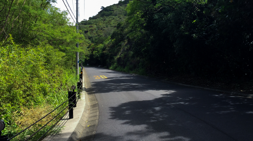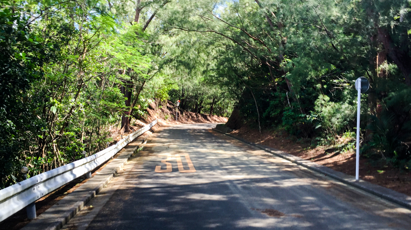 父島の中心部である大村の街を抜け、奥村まで行き折り返して戻ってくるフラットな3kmコースです。観光ポイントを巡るコースではありませんが、そのほとんどが歩道上を走るコースになっているため安全で走りやすく、ビギナーランナーにぴったりのコースです。復路には戦時中に掘られたトンネルを通るので、ちょっとした戦跡巡り感覚も味わえるかもしれませんね。